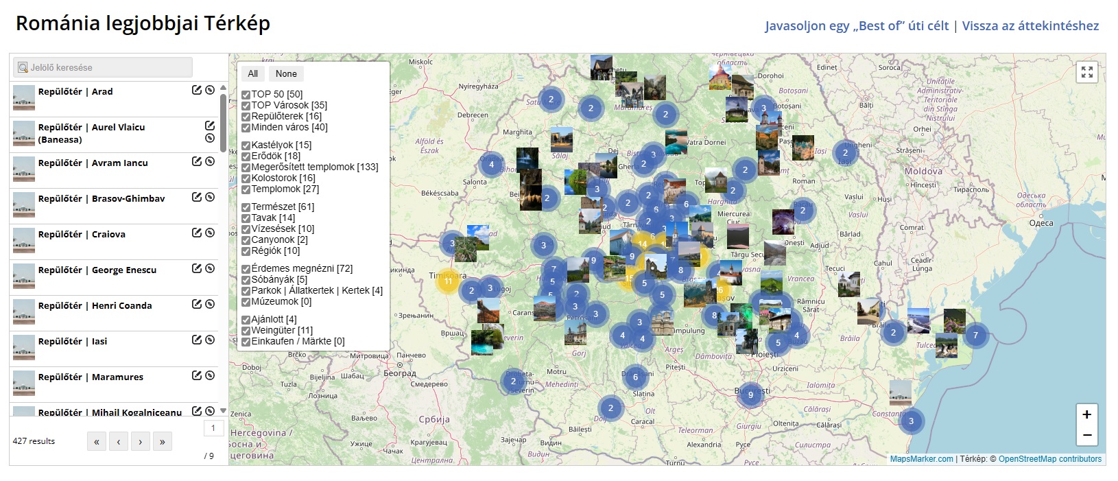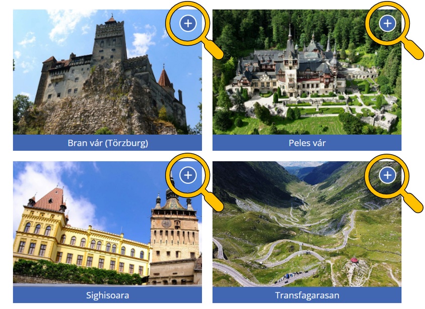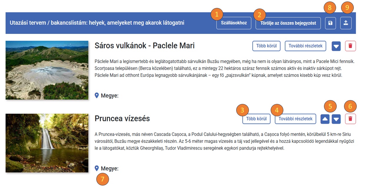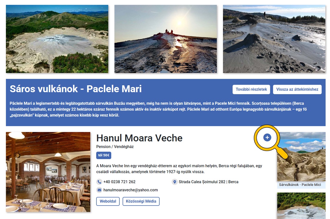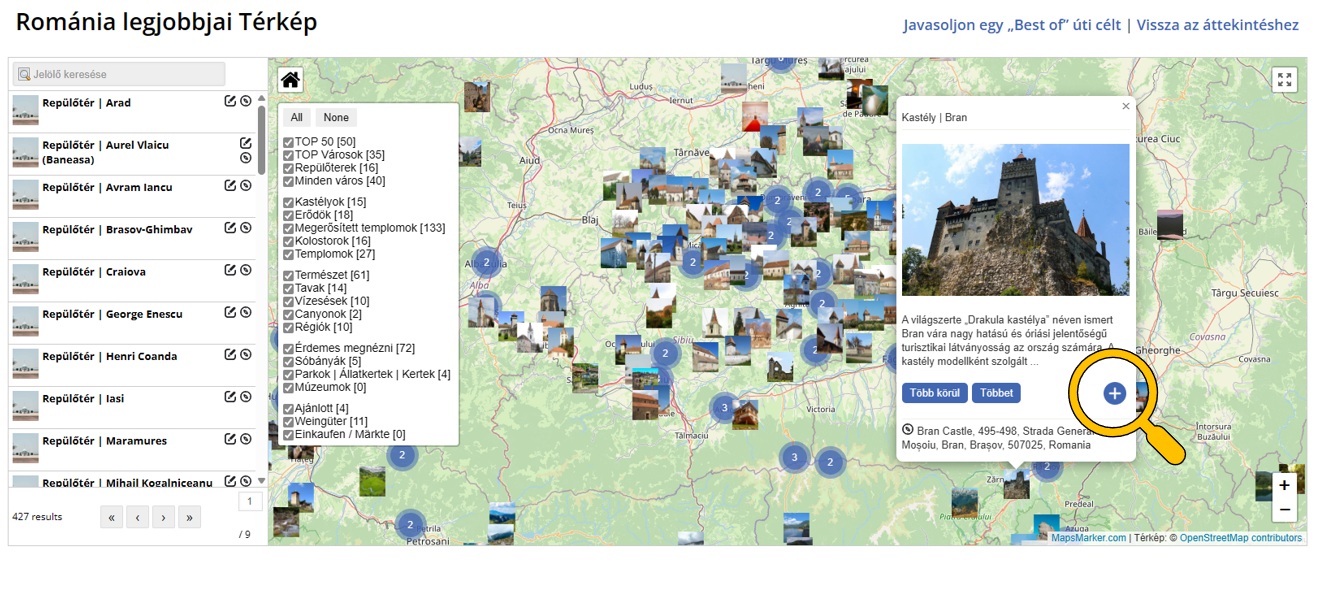 (1) Böngésszen a “legjobbjai” szakaszban és a roTravel24 térképen. Nézze meg a következő bejegyzéseket is “Borvidekek / Boraszatok” and “Parkok | Allatkertek” (a térkép és az „Élmények” menü segítségével érhető el) is hozzáadható.
